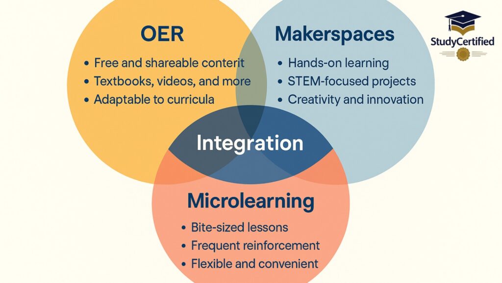 While OER provides a strong knowledge base, maker spaces encourage application, and microlearning reinforces concepts regularly. This blend supports blended learning techniques and multimodal education strategies.